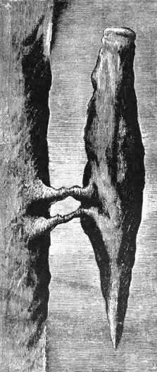 После нескольких переходов мы вышли затем в наибольший грот пещеры — в так называемую залу гигантов (Giants Hall) — обширное пространство со множеством величественных сталактитов, спускающихся с середины потолка почти по правильному кругу и образующих внутри залы отдельный и чрезвычайно красивый грот. Поднимающиеся же снизу огромные сталагмиты напоминают большие канделябры. Высота грота по середине не менее пяти саженей. Около одной из стен имеется прекурьезное образование, названное дамским туалетом. Проводник уверял, что это туалет Дианы и показать тут же вблизи впадину с водой, которая служила ей ванною. Далее со стены свешивается как бы огромное одеяло, представляющее ряд мелких сталактитов, сплошь сросшихся в одно целое. Это одеяло настолько тонко, что когда проводник осветил его сзади — оно просвечивало красивым красновато-желтым светом. К подобным же образованиям принадлежат расположенные в других местах пещеры: вуаль титана, грот с занавесью и кожаный рынок.