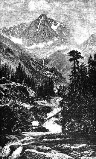 По выходе из туннеля прежде всего бросается в глаза высокая одинокая гора, называемая горою Святого Креста. На ней имеется три глубоких ущелья — одно продольное и два боковых, пересекающих продольное в одной точке; эти ущелья постоянно наполнены вечными снегами. Зимою, когда вся гора покрыта снегом, она представляется одной снеговой шапкою, но летом, когда вершины и склоны обнажаются, три упомянутые ущелья ясно вырисовываются — на мрачном фоне темных скал в виде огромного белого креста. Издали можно подумать, что крест просто нарисован на склоне горы. Местность, по которой мы теперь ехали, пожалуй, еще красивее, чем раньше, до туннеля, но она не так разнообразна в беднее водою. Поезд шел всё скорее и скорее, так как непрерывно спускался под гору; однако, из предосторожности его везли всё еще два паровоза, и только на станции Аспен один паровоз был отцеплен, и мы двинулись дальше обыкновенным порядком.