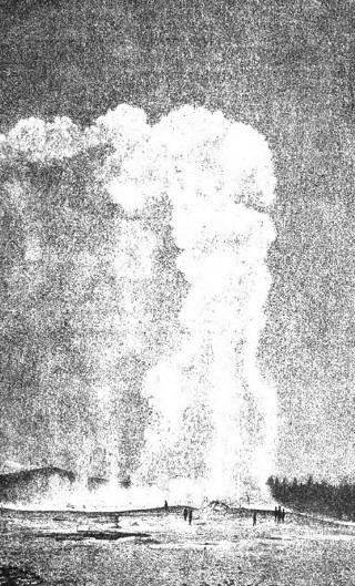 К востоку от «Улья» расположен довольно значительный бассейн, наполненный чистою и прозрачною голубоватою водою. Это Гигантесса (Giantess). Мы увидали здесь целую толпу зрителей и какого-то профессионального фотографа: ждали немедленного извержения, потому что начались уже его признаки, и гейзер целых две недели был спокоен. Сперва мы, т. е. я с Оксом, не хотели ждать, полагая, что, быть может, сегодня вовсе не будет извержения и, осмотрев кратер, пошли дальше, но не успели мы отойти и ста шагов, как радостные крики оставшейся толпы возвестили начало извержения, и мы тотчас вернулись назад. Зрелище было великолепное. В роскошном столбе водяных брызг играла почти круглая радуга. Столб то опускался, то снова возносился на высоту более 20-ти саж. Благодаря огромной ширине отверстия кратера, фонтан выбрасывался не узкою струею, а целым снопом величавых брызг.