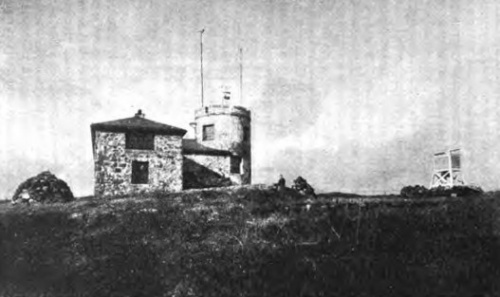 Метеорологическая обсерватория на Синем холме (Blue Hill Observatory) находится в 12-ти верстах к югу от Бостона. Я поехал туда по стариннейшей в Америке железной дороге The Old Colony R.R. и от станции Редвиль (Readville) взял маленькую американскую карету. На пороге обсерватории я был встречен наблюдателем Клэйтоном (Н. Clayton), который затем и показал мне ее во всех подробностях. Эта обсерватория принадлежит к разряду «горных» и основана в конце 1884 года на частные средства. Её положение: широта 42°12′44″, долгота от Гринвича 71°6′53″ и высота над уровнем океана 635 футов. Здание обсерватории не обширно, но отделано весьма уютно и даже роскошно.