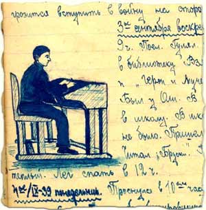Пришел из школы обедал. Читал «Бруски». Пил чай. Ел студень. Лег спать в 12 ч
