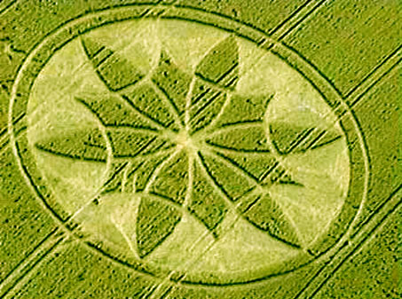 22 июля, когда луна стояла в перигее, и выглядела больше обычной, утром в 19-м квартале в доме, с выходом на Южное шоссе, увидели, что, напротив, на гречишном поле возникла круговая, замысловатая фигура, глифы, какую обычно приписывают проделкам НЛО.