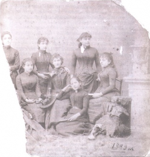 На фото: Группа учениц 6 пансиона пани Космовской: в 1 ряду слева сидит Янина Горвиц, справа от нее: Хлена Хиршфельд, Аделя Космовская, Антонина Хват, Мария Зембиньская, Матильда Голдфлюс