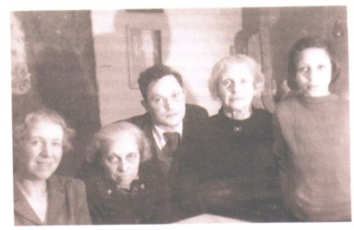 На фото: Ханна Морткович-Ольчак, Камилла Канцевич, Янек Канцевич, Янина Морткович, Иоася Ольчак, 1945 г.