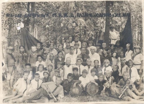 Фото: Пионерлагерь.1932 год. Элиза в верхнем ряду, между горнистом и двумя парнями.