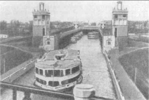 Шлюз № 7 расположен у села Покровское-Глебово, а шлюз № 8, разделенный от него небольшим участком канала, у села Щукино. Камеры шлюзов и основные конструкции стен, голов и ворот однотипны с остальными шлюзами канала (длина каждой камеры 300 м, ширина по дну 30 м и минимальная глубина воды 5,5 м). Исходя из геологических условий — в основании шлюза № 7 лежат мелкозернистые черные юрские пески, а шлюза № 8 — черная юрская глина — был принят доковый тип камер шлюзов: неразрезное днище толщиной 4,5 м и монолитные стены. Учитывая возможность неравномерных осадок, а также усадочные температурные явления, камеры шлюзов разбиты по длине на секции, длиной 20 м каждая. Головы шлюзов также неразрезные, представляющие единое целое с железобетонным днищем той же толщины. Секции камер и головы сопрягаются между собою с устройством гудронными антифильтрационными шпонками. Ворота средних и нижних голов шлюзов — створчатого типа, а верхних голов — сегментные с напуском воды в камеру из-под затвора. После заполнения камеры водой сегментный затвор опускается в нишу, которая является одновременно и водобойным колодцем, гасящим энергию воды, падающей из-под ворот в камеру шлюза. Наполнение нижних камер и выпуск из них воды производится через водопроводные галереи средних и нижних голов шлюза. В подходах к шлюзам запроектированы ограждающие палы, в виде бетонных площадок на высоком свайном ростверке. Выемка котлована глубиной до 25 м под шлюз № 7 представляла чрезвычайные трудности. Грунты в пределах котлована были, в основном, водонасыщенные, типа плывунов. Обстановку осложняла крайняя стесненность площадки, заставлявшая идти на крутые, хотя и разрезанные бермами откосы в этих неустойчивых грунтах. Первый же период работ показал невозможность организации водоотлива с помощью обычных центробежных насосов с забором воды из постепенно углубляемых деревянных колодцев. Тяжелые первые советские паровые экскаваторы «Ковровец» с емкостью ковша 2,5 куб. м, передвигавшиеся по перекладным железнодорожным звеньям пути, временами буквально тонули в разжиженном грунте до уровня парового котла и их приходилось спасать от дальнейшего погружения местным водоотливом и обкапыванием. Дороги для автомобильной вывозки грунта из-под экскаватора укладывались из тяжелых лежневых щитов, также глубоко проседавших под грузом автомашин. Вспоминается трагикомический инцидент, произошедший здесь со мной, вернее, с водителем старенького легкового «газика». Водитель привез меня к шлюзу и, зная, что я пойду вдоль него, решил проехать по автовозной дороге и пристроился в очередь грузовых машин, шедших медленным, но сплошным потоком под погрузку грунта экскаватором. Машинист экскаватора после того, как выгрузил ковш жидкого грунта в предыдущую машину, машинально опустил следующий ковш в мой несчастный открытый «газик», который под этим трехтонным грузом буквально развалился на куски. К счастью, водитель не пострадал, но мне пришлось потом некоторое время ездить в полуторке. Следует сказать, что разжиженные песчаные грунты сравнительно легко отдавали воду при откачке или при отвале в кавальеры, создавая в последнем случае весьма плотную насыпь. Это обстоятельство, кстати, позволило построить насыпи строившегося нами обходного участка Калининской железной дороги, пере