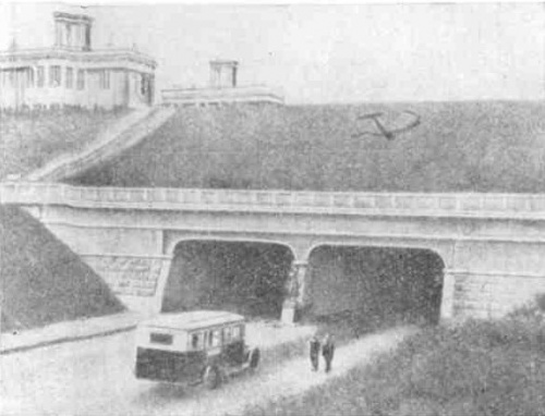 В такие же рекордно короткие сроки строители возвели и другое сооружение, хорошо известное москвичам. В районе Тушино канал пересекал Волоколамское шоссе. Единственным приемлемым решением этого узла было строительство двухпутного железобетонного тоннеля для пропуска автомобильного транспорта и трамвая под каналом. Естественно, что сперва строилась железобетонная коробка тоннеля, укладывалась гидроизоляция, а над ним уже сооружалось земляное ложе канала. Ширина проезжей части в каждой из двух секций тоннеля составляла 6,5 м, одностороннего тротуара — 1,5 м и предохранительных полосок — 0,25 м. Таким образом, общая ширина в каждой секции составляет 8,25 м, высота — 4,75 м. В целом это хотя и не очень крупное, но весьма ответственное сооружение заслуженно было предметом гордости строителей канала, и в частности Южного района. В основании тоннеля залегает слой тонкой илистой супеси мощностью от 1 до 5 м, ниже которых лежат разнозернистые пески, на глубине от 2 до 4 м переходящие в юрские супеси. Лабораторные испытания дали весьма низкие показатели верхних илистых супесей и после сравнения ряда вариантов (уплотнение, сваи) было принято решение удалить эти супеси, заменив их качественным кварцевым песком с послойной его укаткой тракторами и поливкой водой с уплотнением до 105 процентов от природной плотности. Во избежание разницы осадок тоннеля и дамб канала такое же основание выполнено и под дамбы. Учитывая неодинаковую нагрузку на тоннель по его длине, а также во избежание недопустимых деформаций от температуры и усадки тоннеля, конструкция его разделена по длине сквозными швами на 8 звеньев длиной от 15 до 21 м. Конструктивно тоннель представляет из себя двухпролетную железобетонную жесткую раму с толщиной внешних стенок 0,7 м, средних стенок 0,5 м, а верхних и нижних плит 1,0 м. В тяжелых и средних по нагрузке звеньях применен бетон марки 170 кг/см2, а в облегченных 130 кг/см2. Учитывая, что слой воды в канале над тоннелем превышает 7 м, особое значение придавалось гидроизоляции тоннеля и, в частности, стыков между звеньями. Изоляция тоннеля была принята в принципе такая же, как выполнялась в 1936 г. в тоннелях Московского метрополитена. Продуманность конструкции гидроизоляции, чрезвычайная тщательность производства работ при постоянном контроле позволила обеспечить высокую надежность гидроизоляции, несмотря на несовершенство применяемого в те годы листового гидроизоляционного материала — рубероида (вместо современного гидроизола, металлоизола и т. д.). За три десятилетия эксплуатации канала практически никакие протечки ни в пределах оснований конструкции, ни по стыкам звеньев не имели места. Накануне дня авиации 30 июля 1936 г. были закончены все отделочные работы. И на следующий день тысячи москвичей ехали и шли на Тушинский аэродром через новый тоннель, любуясь его красивыми порталами и скульптурами. В настоящее время построенный тоннель под каналом оказался уже недостаточным для пропуска неизмеримо возросшего потока транспорта. Сейчас вблизи от действующего тоннеля ведется сооружение параллельного второго тоннеля. |