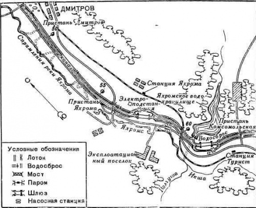 В мае 1936 г., когда основные работы на сооружениях Южного района подходили у концу, я был назначен начальником работ Центрального района. Двадцатикилометровый участок включал в себя два шлюза (№ 3 и № 4) с двумя насосными станциями, два водосброса, железнодорожный мост Савеловской ж. д. через канал, два шоссейных моста, 37 км вторых путей Савеловской ж. д., три пристани и ряд других сооружений (см. схему). В этом районе за годы строительства вынуто 18 млн. куб. м земли (на 3 млн. куб. м меньше, чем на всем строительстве Беломорско-Балтийского канала), причем более 2 млн. куб. м грунта выбрано с помощью гидромеханизации. Разработка выемки канала гидромеханическим путем в Центральном районе началась в 1934 г., но в основном проводилась в 1935 и 1936 гг., когда одновременно работало до шести установок. Гидромеханизация в основном использовалась в тех случаях, когда разработка грунта другими методами была крайне затруднительна (затопленные участки, доработка отдельных участков, оставшихся после выемки другими методами и т. п.). Несмотря на сложные условия работы, стоимость гидромеханической выемки одного куб. м грунта составляла в ценах того времени 2 р. 37 к., что было дешевле любых других способов выемки. В Центральном районе мы попытались на одном сложном обводненном участке канала, где намечалось отставание земляных работ, проводить их с помощью гидромеханизации и зимой. Однако попытка оказалась неудачной. В условиях низких температур обмерзание лотков и трубопроводов вызывает такие значительные трудности и столько ручного труда, что сводятся на нет все преимущества гидромеханизации. Этот метод не для зимы. Вспоминается и такой случай. Как-то, сокращая путь, я решил не обходить большую пульповую карту, а пересечь ее, считая, что образовалась достаточно прочная сухая корка. Сделал десятка два шагов и провалился. Спустя несколько минут погрузился уже по пояс, зная, что глубина пульпы не менее двух метров… Мое счастье, что на другом берегу канала работали грабари! Они услышали мои крики о помощи и, связав вместе несколько вожжей, успели кинуть мне петлю, когда пульпа была уже на уровне груди. С тех пор я стал бояться тонкого льда, пульповой корки и болотной трясины. Гибель одного рабочего в забое гидромеханизации заставила всех понять, какое страшное оружие представляет тугая струя гидромонитора и что сектор «обстрела» его должен быть надежно изолирован. |