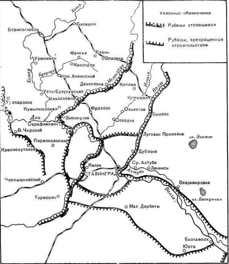 «Сегодня, 16.1, нами получена за подписью заместителя начальника ГУ ОС НКО телеграмма № 8631, в которой сообщается, что «начальник Генштаба Красной Армии приказал законченные и приостановленные строительством рубежи сдать Военсовету Сталинградского военного округа.