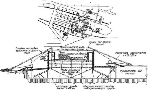 Иллюстрация: Строительный генеральный план беспрерывного бетонирования «пней» доменных печей:
