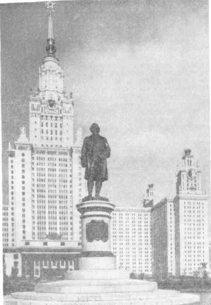 Очень удачно был спроектирован «завод воздуха». Его не видят, так как он расположен под всей площадью сквера между главным корпусом, физическим и химическим факультетами. На площади нынешнего сквера был разработан котлован глубиной примерно 6 м. В нем сооружена монолитная железобетонная коробка, в которой и смонтированы агрегаты по нагнетанию свежего воздуха, подогрева его, а при необходимости и охлаждения. Забор воздуха производится через соответствующие отверстия в обрамлении фонтанов, расположенных по углам сквера. Большие железобетонные воздуховоды также под землей идут от этих агрегатов к корпусам. После завершения этого сооружения и его внешней гидроизоляции оно было засыпано и тщательно уплотнено грунтом, посажены кусты, деревья, цветы, разбиты дорожки, а в центре сквера воздвигнут памятник основателю Московского университета Михаилу Васильевичу Ломоносову работы скульптора Н. В. Томского. Это, как мне кажется, остроумное компоновочное решение позволило избежать загромождения территории МГУ сравнительно крупным техническим зданием и сократило длину воздуховодов. |