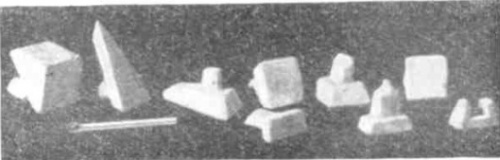После очистки от пыли и грязи внутренняя поверхность гипсовых форм выкладывалась плитками из литого камня. Они приклеивались к формам мастикой, состоящей из двух частей белого гипса и одной части растворенного в воде технического желатина. Гипс, вытесненный из швов между плитками, тщательно счищался, а пустые швы заделывались не на полную глубину раствором белого цемента и люберецкого песка.