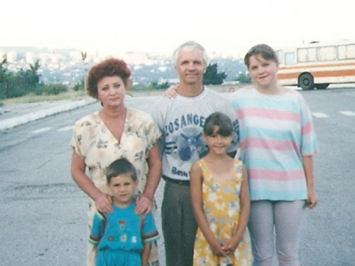 На фото: Я и Люба с дочерью Леной (она справа) и внучатами (детьми сына Игоря) Виталиком и Алёной в Геленджике. 2000 год.