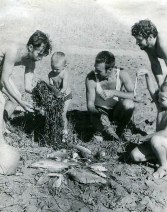 На иллюстрации Борис Дрокин на рыбалке с сыном Димочкой, дочкой Ирой, шофёром и технико