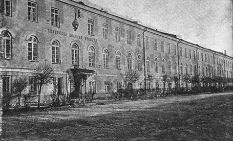 Огромное трехэтажное здание юнкерского училища занимало большой городской квартал на высоком левом берегу р. Вилии. С Георгиевского проспекта к училищу поднимался крутой Юнкерский переулок, а с юга наш плац примыкал к старому лесному массиву Закрст, где когда-то стоял летний дворец графа Витгенштейна. Этот дворец был в 1812 году резиденцией Наполеона, а после его изгнания в том же дворце останавливался Александр I.