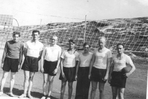 На фото: Волейбольная команда строительного района. Крайний слева Александр Романенко, второй я.
