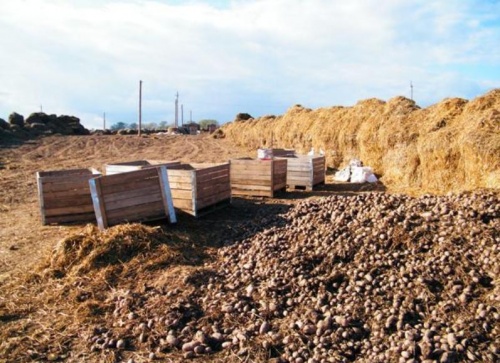 Картофель лежит на полях в буртах, укрыт соломой. Так он в этих краях и зимует в буртах. Говорят, степень сохранности такая же, как в хранилищах. Мы раскрыли бурт с одного конца и затариваем картофель в мешки. Мешки грузим на тележку трактора, он отвозит на станцию. Работа не блещет разнообразием, устаём прилично.