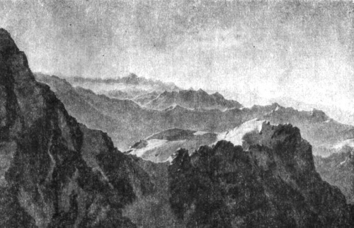 Снегопад прекратился. По плану Чекмарева утром их группа должна спуститься вниз по не пройденному еще никем пути, прямо на ледник Мижирги. Наши пути расходились. Николай и Валя пошли вниз, где глубоко под ними ощетинился ледяными торосами мощный ледопад Мижирги. Мы же двинулись вверх, к нависающей над нами четырехсотметровой стене Коштан-тау.