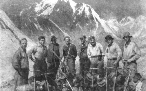 Иллюстрация: Группа участников экспедиции на Северо-Западный Памир. Справа налево: И. Дайбог, Е. Абалаков, А. Летавет, С. Успенский, М. Ануфриков. А. Зенякин, Е. Иванов, А. Гожев