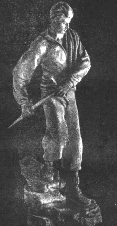 На поясе у первого висит целая связка железных скальных крючьев. Вот уже крюк, звонко гудя под ударами скального молотка, входит в узкую, едва заметную расщелину. В ушко крюка зацепляют карабин — стальной захват, а с ним и веревочную петлю, одним концом закрепленную на ботинке. Альпинист выжимается на ноге и подтягивается вверх. Снова забивает другой крюк с петлей для другой ноги и подтягивается еще выше. Так, забивая крючья и попеременно перецепляя по ним карабины с веревочными петлями, человек медленно, как по веревочной лестнице, влезает на отвесную стену. Чтобы легче было лезть, он оставляет свой рюкзак внизу. Поднявшись на скалу, альпинист вытягивает рюкзак на веревке.