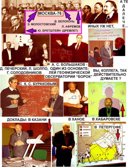 …Я участвовал во многих таких научных «сабантуях». Кроме того часто посещал и чисто геологические - «тектонические» и «металлогенические» конференции, косвенно касающиеся и моей основной профессии. Первое моё участие в таких мероприятиях относится к 1965-му году (когда я работал ещё на производстве) – это было Всесоюзное Металлогеническое Совещание в Ленинграде. Последний мой приезд с докладом на Международное научное совещание состоялся в 2011-м году во Владивостоке. Т. е. я активно и успешно «присутствовал и докладывал» на различных научных «сборищах» в течение более 45-ти лет. А если добавить сюда многие региональные Дальневосточные конференции, в которых я участвовал, работая ещё на производстве, то общий стаж моей «публичной» отчётности перед коллегами «перевалит» за полвека…
