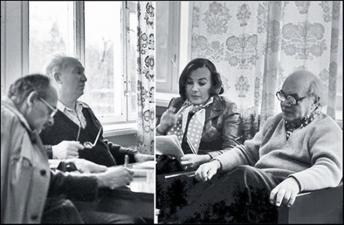 В последний день чуть свет разбудил парадно одетый Петя Кошель – потребовал, чтобы я взял фотоаппарат, повлёк по тёмным коридорам и вломился в комнату к Самойлову. Бормоча: «На память, Давид Самойлович, для истории!» – оттеснил готовившую чай Татьяну Глушкову, поднял с постели Владимира Соколова, одел и пересадил на кровать к Самойлову, сам тут же втёрся между ними, оторопевшими, и мне: «Давай, снимай скорее!…»