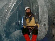 А мы сегодня с утра пошли в поход, в ледяную пещеру. У нас на острове, в леднике, есть трещины. Некоторые из трещин сверху затягиваются, снизу расширяются и образуются красивейшие пещеры, с ледяными сталактитами и очень скользкими стенами и полом. Вход в одну из таких пещер находится на отвесной ледяной стене неподалеку от купола, на котором мы катаемся. Раньше туда идти не стоило – погода была относительно теплой, и внутри было опасно, но сейчас, после месяца морозов, как раз наступили дни для посещения пещеры. Мы, как настоящие альпинисты, навешали на себя кучу веревок, железок, надели каски, шипы на ботинки, и полезли любоваться красотами. Описывать это бесполезно – внутри просто дух захватывает, как будто бродишь по хрустальному дворцу. Привезу с зимовки видео, которое мы снимали в пещере – там можно будет полюбоваться частичкой этой красоты. А пока что – просто фото оттуда.