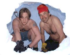 Метеорологи загодя заказали на этот день хорошую погоду, так что был штиль и чистое небо. Соответственно, согреваясь в процессе копания, снял сначала куртку, потом полар. Потом даже футболку на некоторое время снял, но побоялся обгореть и натянул ее обратно. Глеб был не настолько предусмотрительный, поэтому он сейчас имеет нежно-розовый цвет, как свежая ветчина. Начали мы копать в 10 утра, и к обеду вся дорожка представляла собой или прокопанную до бетона траншею, или частично туннели в снегу (просто для разнообразия:) Разумеется, некоторые палки ветром покосило, поэтому дорожку в некоторых местах откапывали почти наощупь.