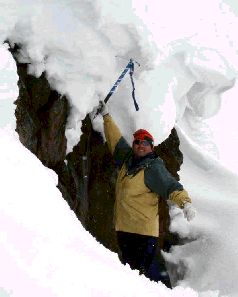 Погуляли сегодня по острову – искали место для установки научного оборудования, по пути пришлось залазить в весьма любопытные места:) На фотке – надо мной висит еще сто тонн снега:)