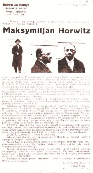 В декабре 1920 года Горвиц был уже на свободе. Вместе с другими товарищами он бежал из лагеря в Домбе. Через дыру, проделанную в гнилых досках забора. Макс уходил первым, из-за ноги это далось ему с трудом. Но как только он вылез, к нему вернулось его обычное хладнокровие. Он спокойно остановился на дороге и закурил трубку, притворяясь обывателем, который вышел подышать свежим воздухом и сейчас у него передышка. Лишь дождавшись, пока пройдет часовой, расхаживавший вдоль забора, Макс медленно заковылял в сторону Кракова. Оттуда прямиком в Берлин. А Министерство военных дел вслед ему — объявления о розыске.