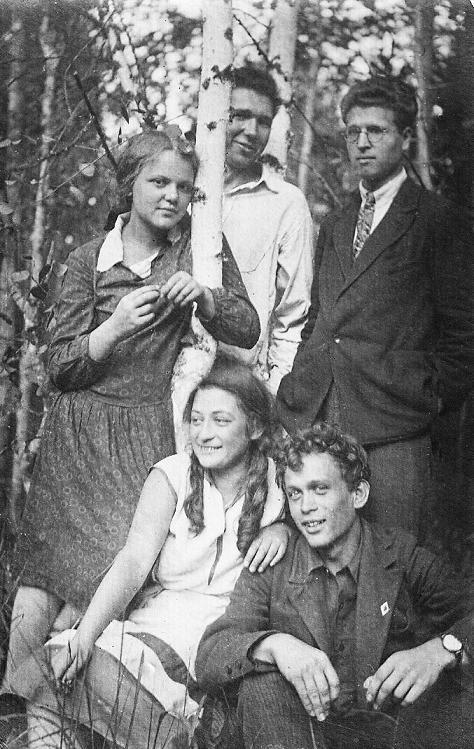 На фото: друзья и сокурсники Михаила Субботы. Стоят: О. Изосимова, М. Суббота, Пчелинцев. Внизу: А. Мельникова, В. Леонов. Лето 1932 года.
