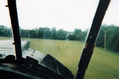 Заходим на нужное поле. Сразу, только перевалив посадку, Толик прибирает газ, энергично отдаёт штурвал от себя, почти пикируем. Пилот включает сброс удобрения, слышно, как сыпется селитра в распылитель и иногда стучат куски удобрения. Снизились, несёмся на «предельно малой». Впереди внизу мелькают ровные зелёные полоски стеблей молодой пшеницы, уносясь под самолёт. Вывернувшись в боковое стекло, вижу, как сзади рассыпается селитра белым шлейфом, расширающимся за самолётом. Тут же этот шлейф сталкивается с землёй и пропадает. Приближается край поля, а с ним и высокая посадка. Но мы несёмся на неё, как-то даже неуютно становится. Перед самой посадкой, когда кажется уже поздно, Толик энергично берёт штурвал на себя, выключает сброс селитры. Буквально перескакиваем посадку. Взревел мотор, Володя резко закладывает левый крен, наверное, градусов сорок пять, отворачивает и тут же перекладывает вправо, также градусов на сорок пять, а то и больше. Это он выполняет разворот, чтобы зайти на следующий противоположный гон. Чтобы селитра ложилась рядом с предыдущей полосой, и выставляются сигнальщики, показывая пилоту край уже обработанной части поля. Так положено по технологии. Но, как я убедился позже, опытные пилоты-химики, а других уже и нету, обходятся и без сигнальщиков. Ориентируются по деревьям посадки, по столбам, если они есть, по разным другим ориентирам.