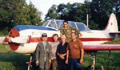 на фото: - у Як-52 на стоянке аэр.Васильевка – 1997г. - В.Дмитрийчук, Г.Чергизов, Прозоров Е.В., А.Безотосный, М.Пузанов.