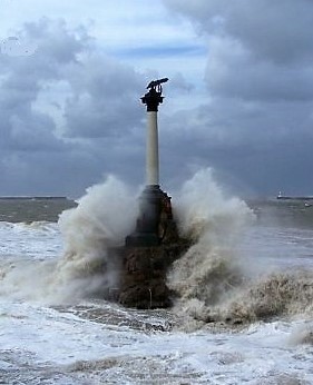 на фото: - Севастополь. Памятник затопленным кораблям. Старое фото.