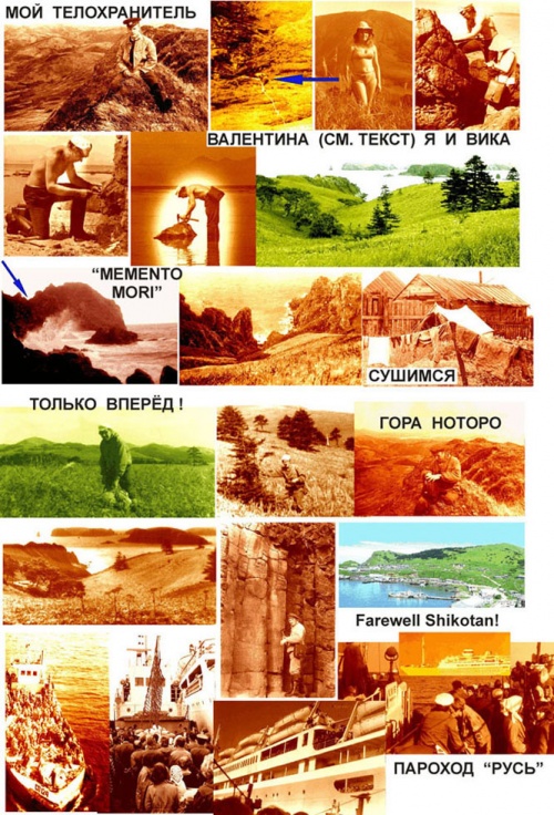 …Наконец, наступил октябрь, пришло время уезжать с наполнившего мою душу незабываемыми впечатлениями и, не скрою, - полюбившегося мне острова. Образцы горных пород были отправлены – всё было готово к отъезду. Возвращалась на материк и «вербота», и студенты, работавшие на комбинате «Островной» всю путину. Из Владивостока за вербованными и студентами пришёл и встал на рейде огромный теплоход «Русь». Погрузка осуществлялась челночными рейсами на больших плашкоутах. Вывозилось где-то несколько сот человек.