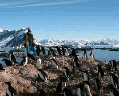 Кстати, позади меня – гора Демария, на которую мы уже лазили. И обратите внимание на айсберг над крайним правым пингвином в верхнем ряду. Красное на пингвинах – это не кровь, а их какашки. Ну и пахнет там… гм, соответственно…