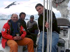 Мы быстренько договорились с ними о визите, Олег нас подбросил на соседнюю яхту, и зайдя внутрь, я обнаружил почти в полном составе всю их команду, с которой мы фотографировались перед восхождением на Мил. Глеб с ними стал знакомиться, а меня они сразу узнали и забросали вопросами типа «как нам сходилось в тот день». Тут же ребята достали откуда-то из своих бездонных запасов бутылку замечательного виски с необычным ароматом, нарезали сыр, позвали нас за стол и устроили небольшую пати по поводу нашего посещения. Мы рассказали, как нас сюда занесло, и Энди тут же сказал, что он сейчас решит нашу проблему, рядом с Локроем стоял корабль «Андреа», где у него был знакомый капитан. После некоторого количества переговоров с кораблем по радио (шуточки у них там были типично армейские, переговоры получились типа «У нас тут на борту парочка заблудившихся украинских ученых, и если вы их подкинете по пути, то они будут отрабатывать свое путешествие, развлекая вам туристов – станцуют стриптиз для пожилых туристок»:) было договорено, что корабль закинет нас на Питерман на следующий день, тем более что нам на Палмере вручили посылочку с просьбой передать Мелиссе.
